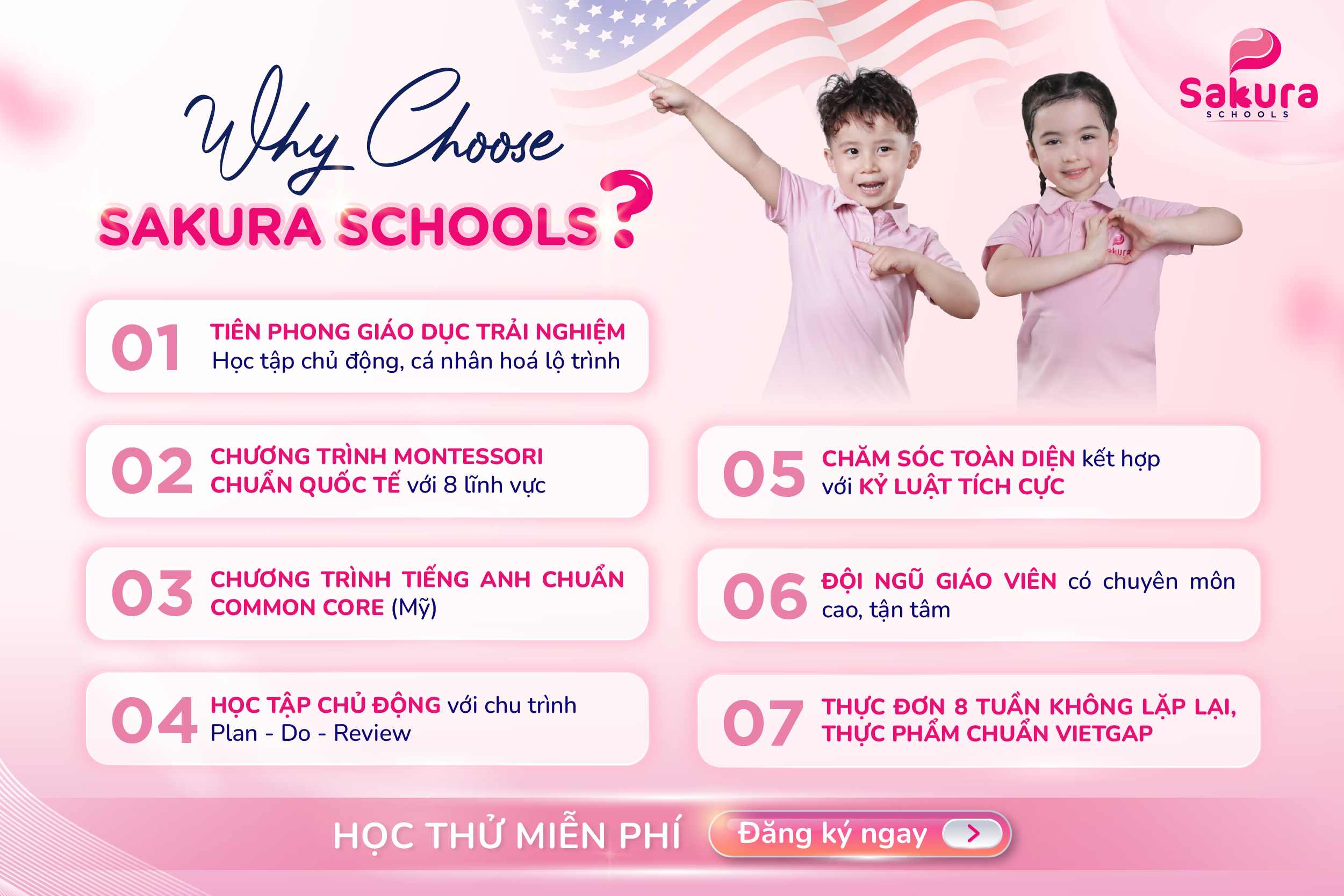 6000+ Phụ huynh mầm non Việt Nam và quốc tế đã tin chọn Sakura Schools nhờ 7 lợi thế khác biệt: