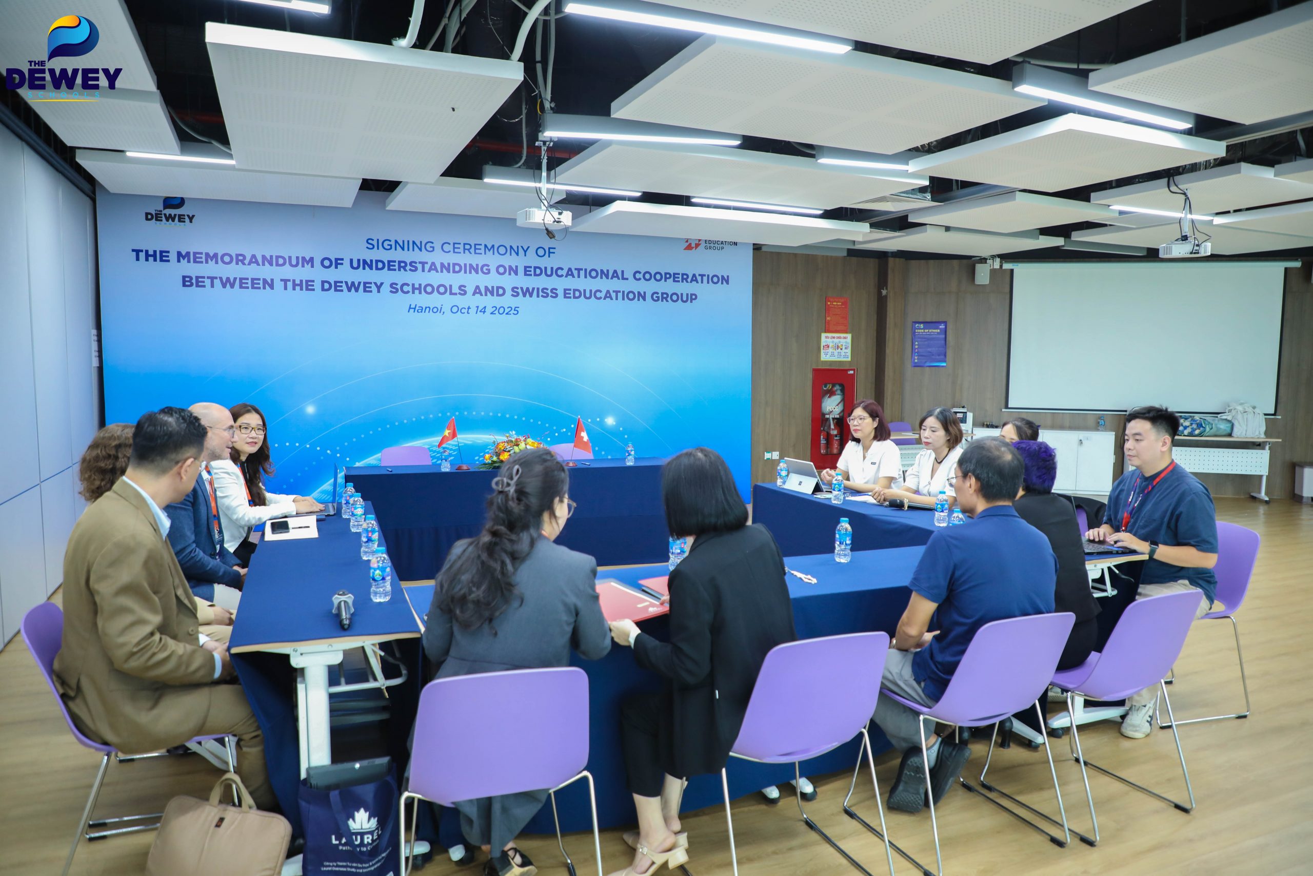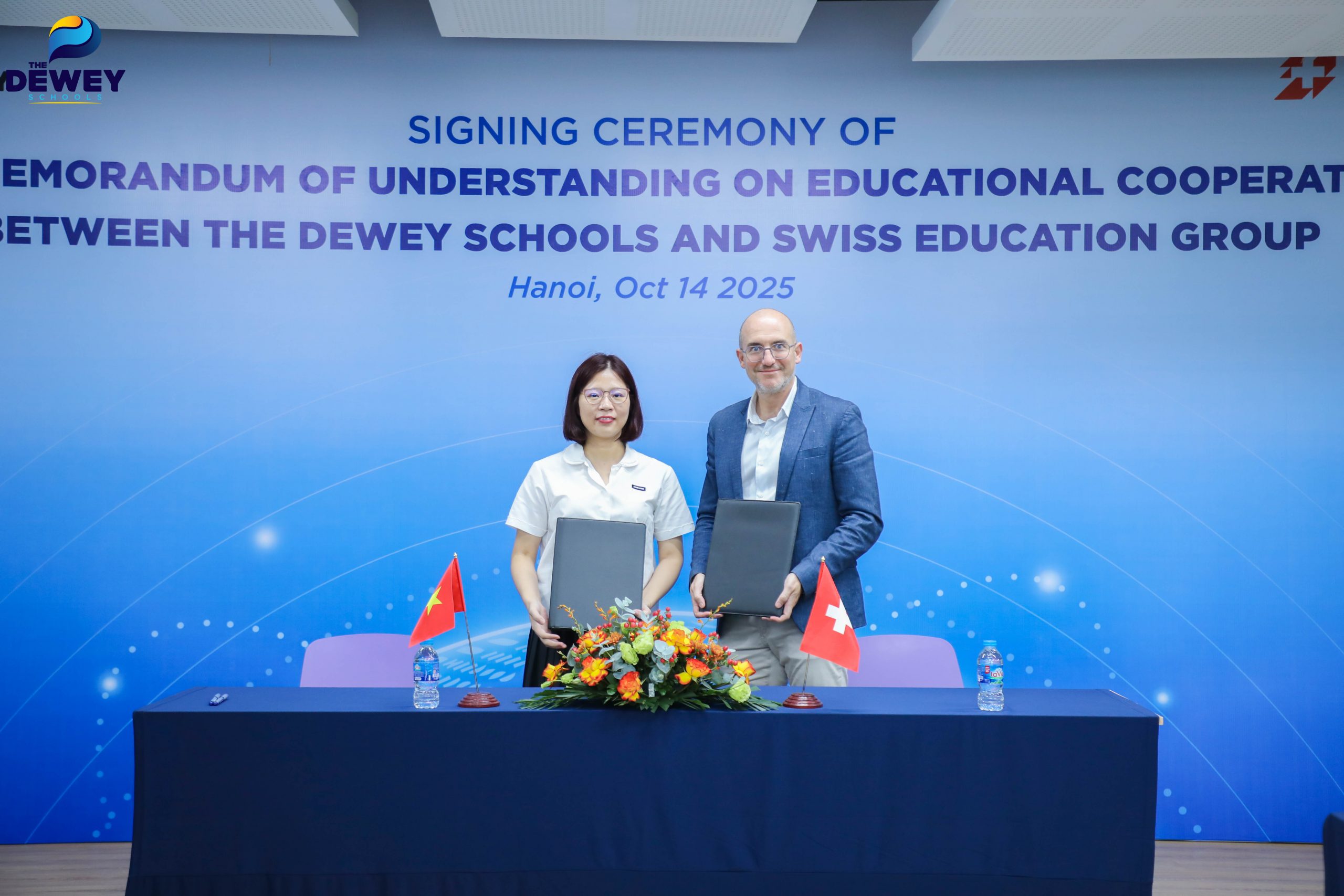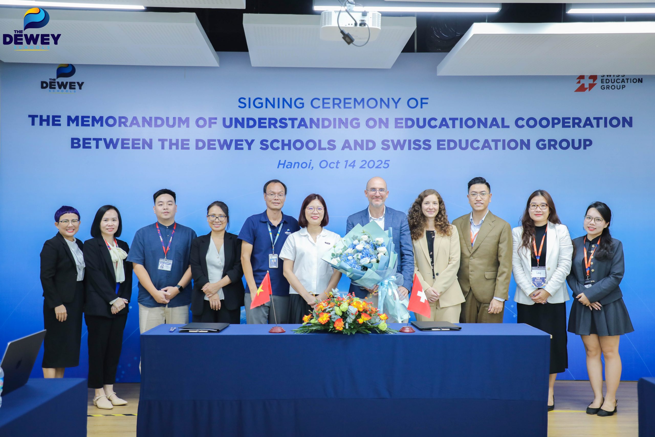 The Dewey Schools chính thức ký kết Biên bản ghi nhớ hợp tác (MOU) với Tập đoàn Giáo dục Thụy Sĩ SEG (Swiss Education Group) – tổ chức giáo dục tư nhân lớn nhất Thụy Sĩ, quy tụ bốn trường đại học hàng đầu thế giới trong lĩnh vực Hospitality, Business và Culinary Arts, gồm: César Ritz Colleges, Swiss Hotel Management School, Culinary Arts Academy Switzerland và HIM Business School.