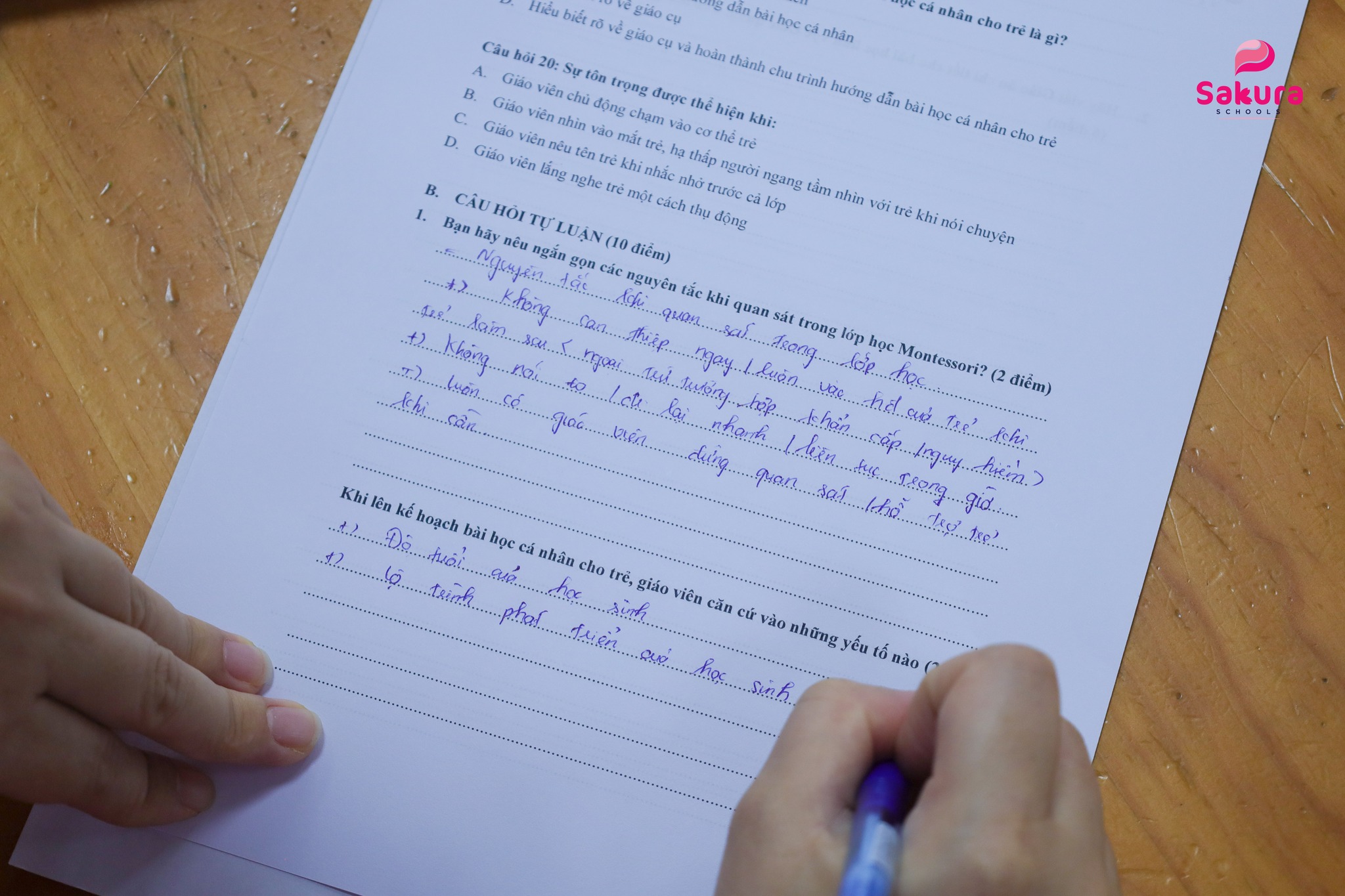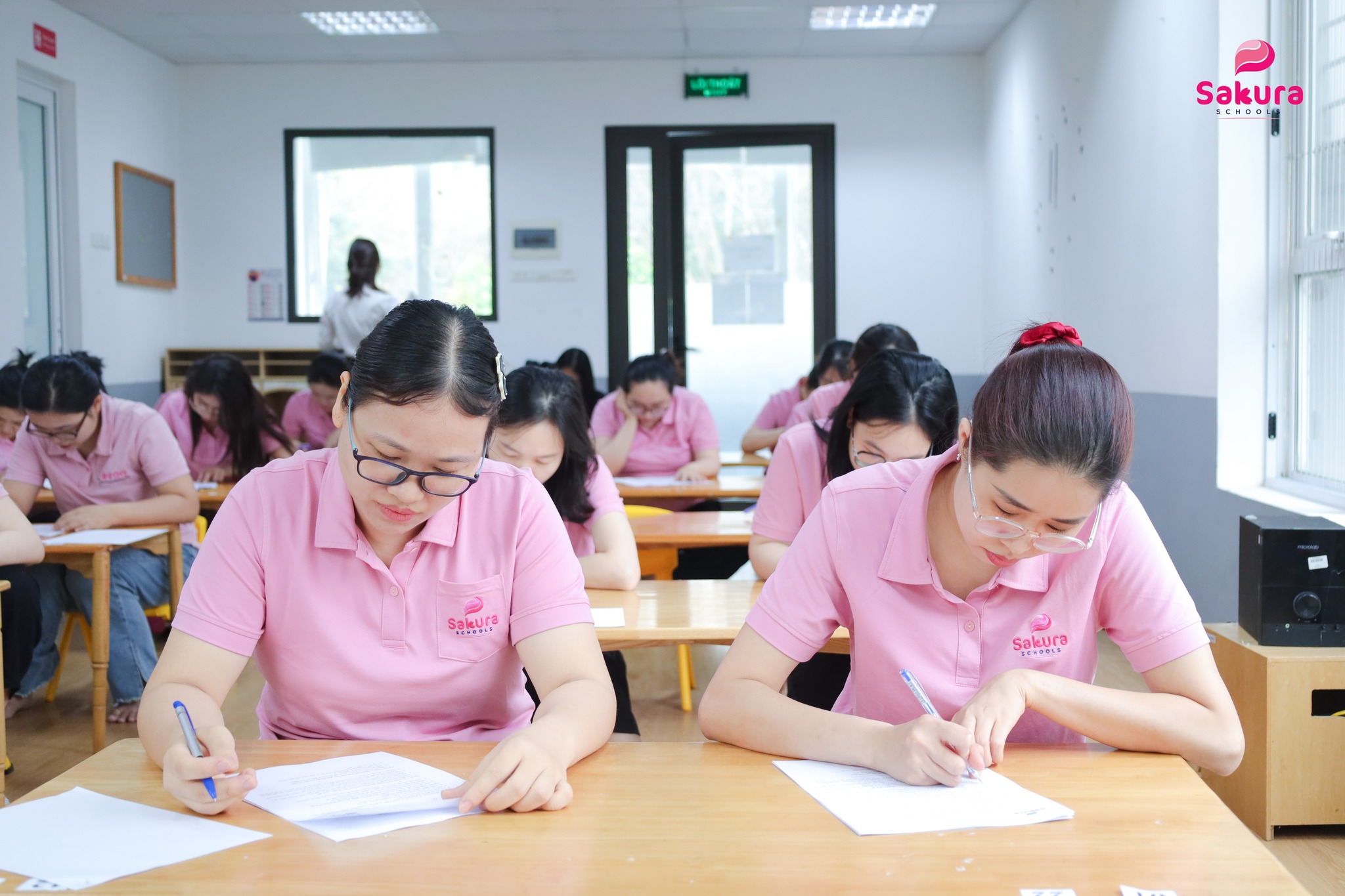Sakura Schools hiểu rằng: Bất cứ sự trì trệ nào của người thầy cũng tạo ra rào cản của học sinh. Vì vậy, kỳ sát hạch năng lực Montessori quốc tế được tổ chức hàng năm như một thước đo bắt buộc, nhằm đánh giá toàn diện năng lực đội ngũ giáo viên và đảm bảo tính chuẩn mực trong toàn hệ thống.