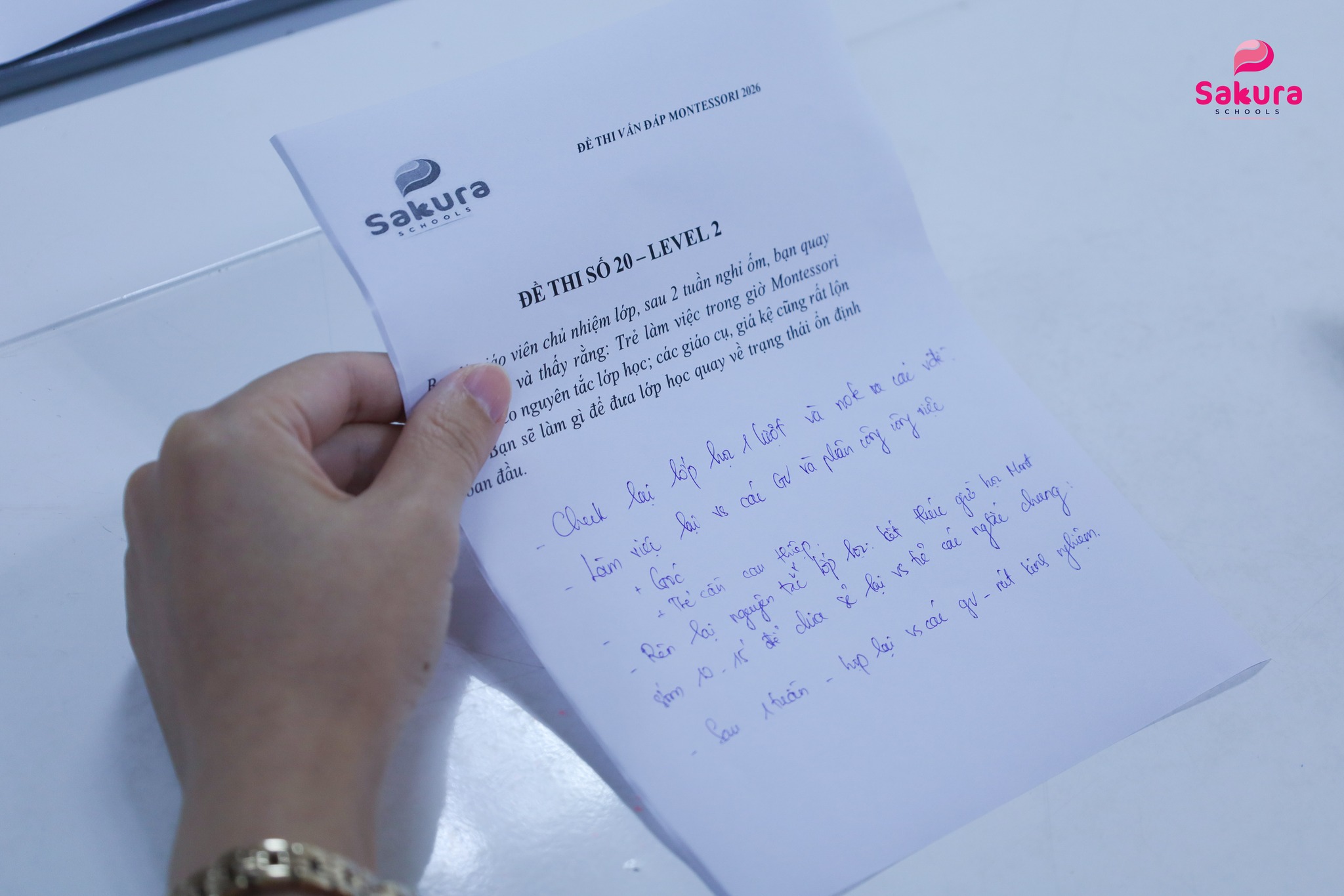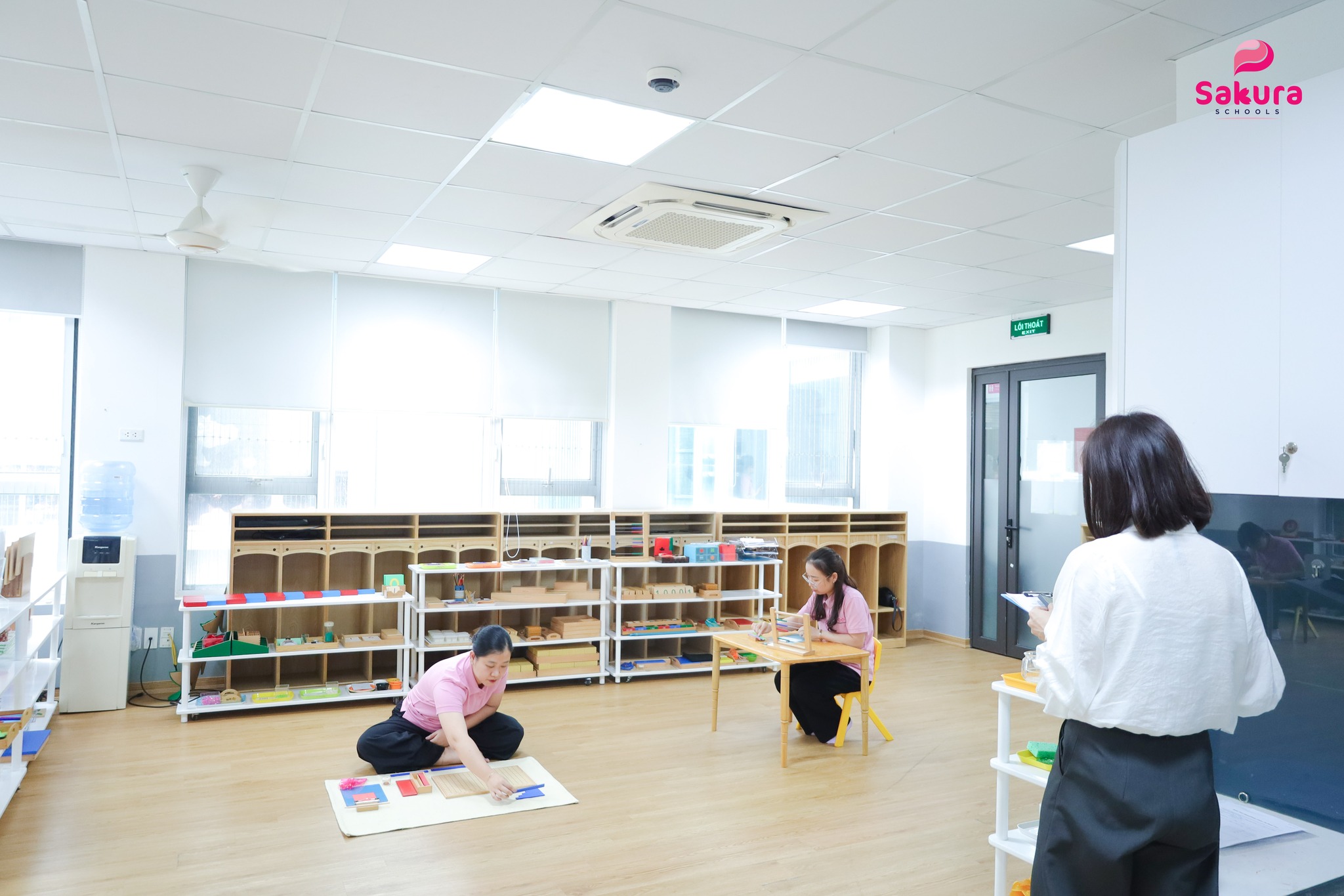 Năm nay, hơn 40 giáo viên Montessori quốc tế từ tất cả các cơ sở cùng tham gia kỳ sát hạch với hệ thống tình huống thực tế trong lớp học và hơn 200 bộ giáo cụ, tạo nên một kỳ thi mang tính chuẩn hóa cao. Từ đó, Sakura Schools không chỉ đánh giá năng lực hiện tại mà còn xây dựng lộ trình bồi dưỡng chuyên biệt cho từng giáo viên, đảm bảo sự đồng bộ và chất lượng giảng dạy trên toàn hệ thống.