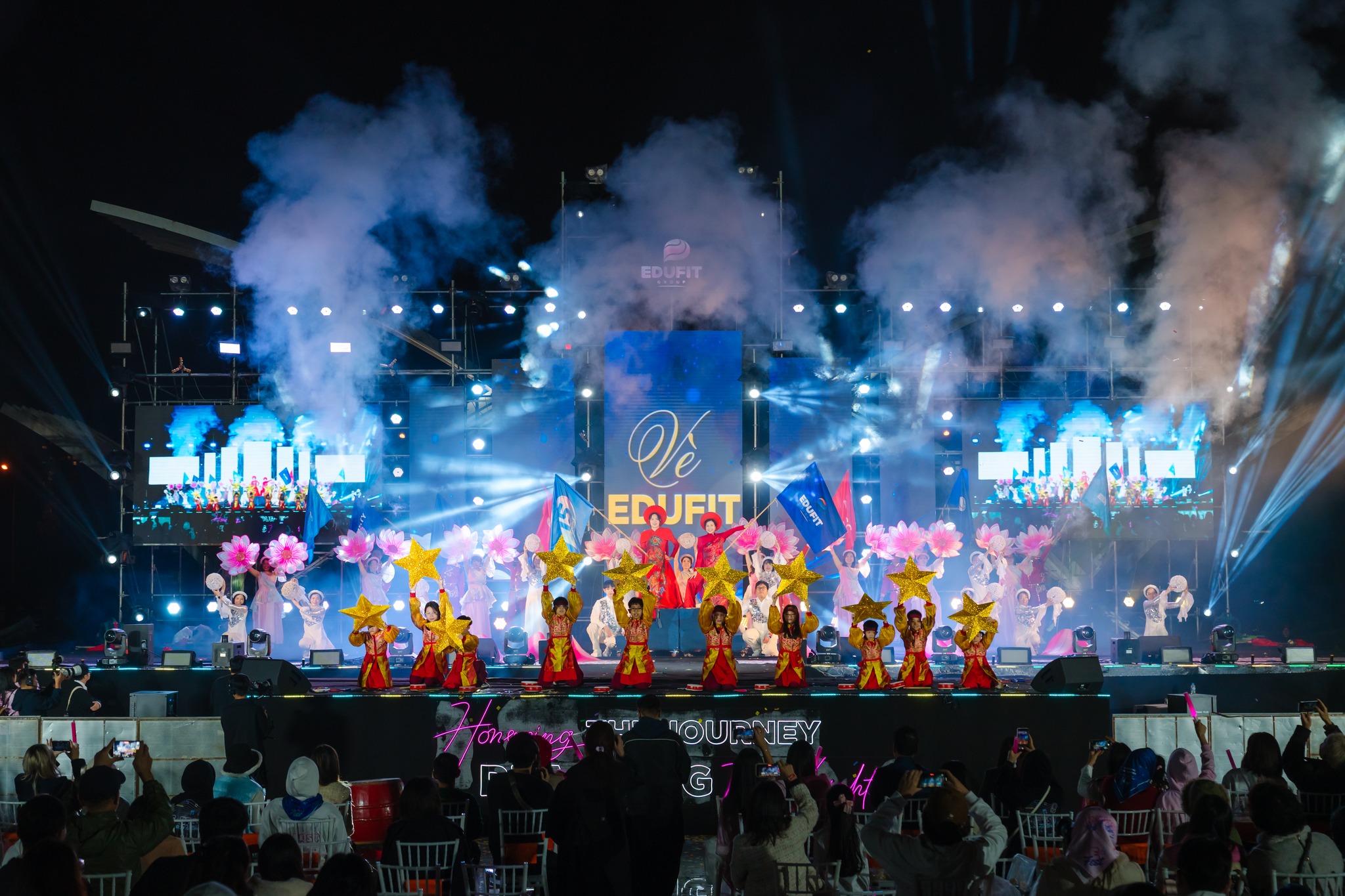 Tiết mục trình diễn mở màn trên sân khấu E-FEST được thể hiện bởi chính các bạn Học sinh DSC. Không chỉ là một màn biểu diễn nghệ thuật, “Vũ điệu của các tinh vân” là minh chứng sống động cho hành trình giáo dục trải nghiệm mà Edufit đã kiên định theo đuổi suốt 15 năm qua.