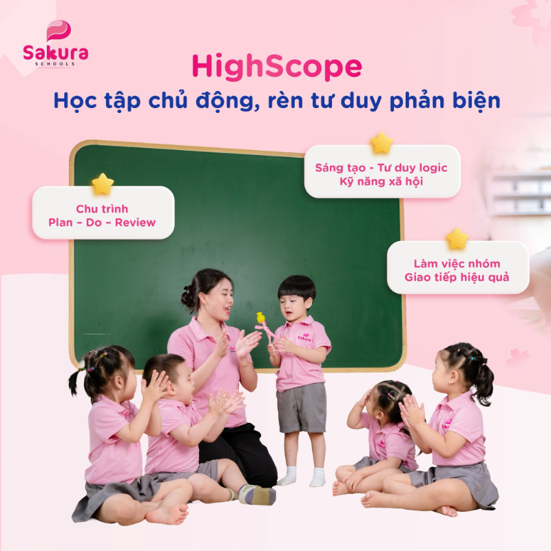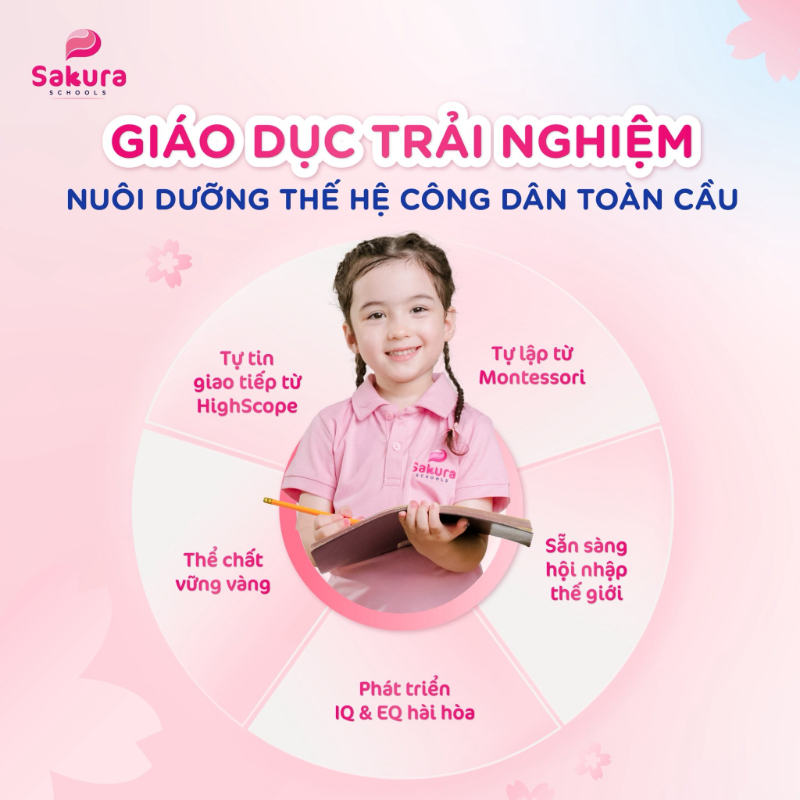 Hai phương pháp giáo dục chuẩn quốc tế Montessori và HighScope được Sakura Schools triển khai bài bản, giúp khơi dậy tiềm năng sẵn có, nuôi dưỡng tư duy độc lập, khả năng thích ứng và tinh thần học tập suốt đời cho trẻ, sẵn sàng cho các cấp học tiếp theo.