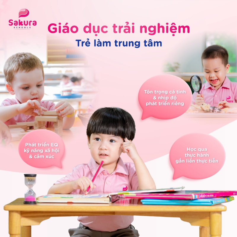Trong hành trình tiên phong kiến tạo một nền giáo dục mầm non chất lượng cao, Sakura Schools lựa chọn giáo dục trải nghiệm làm nền tảng cốt lõi – nơi trẻ được học thông qua chính trải nghiệm sống, được tự khám phá, tự học và từng bước hình thành nên năng lực tự học của chính mình.