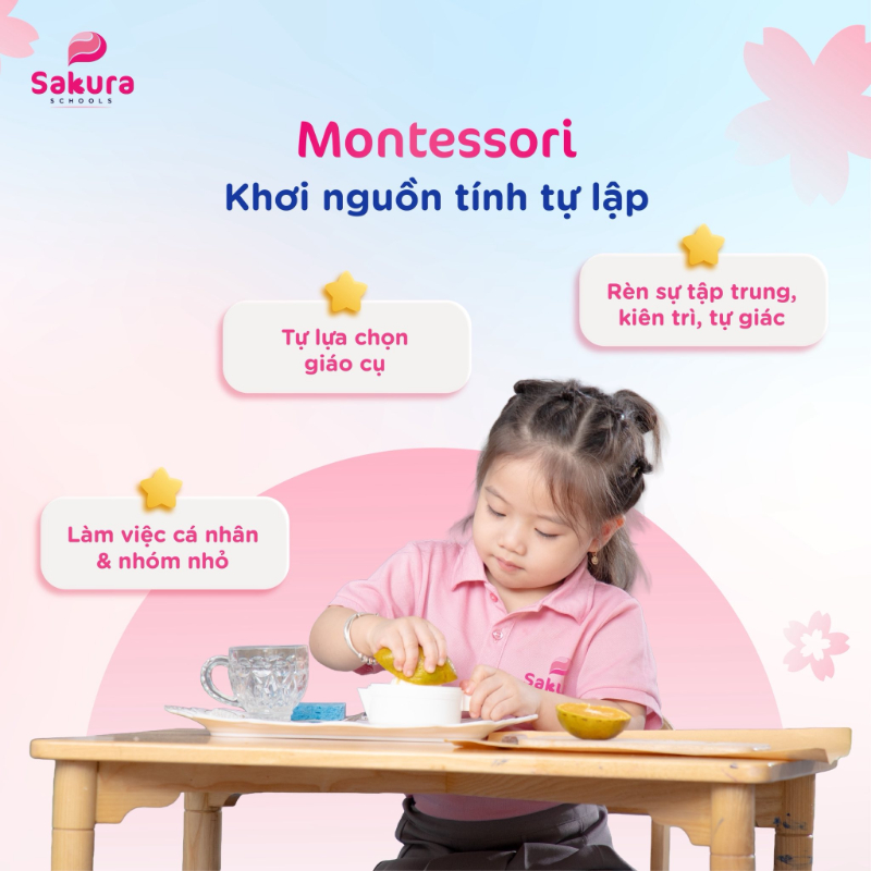 Trong môi trường Montessori chuẩn quốc tế tại Sakura Schools với hơn 200 giáo cụ trực quan, sinh động, trẻ được:
