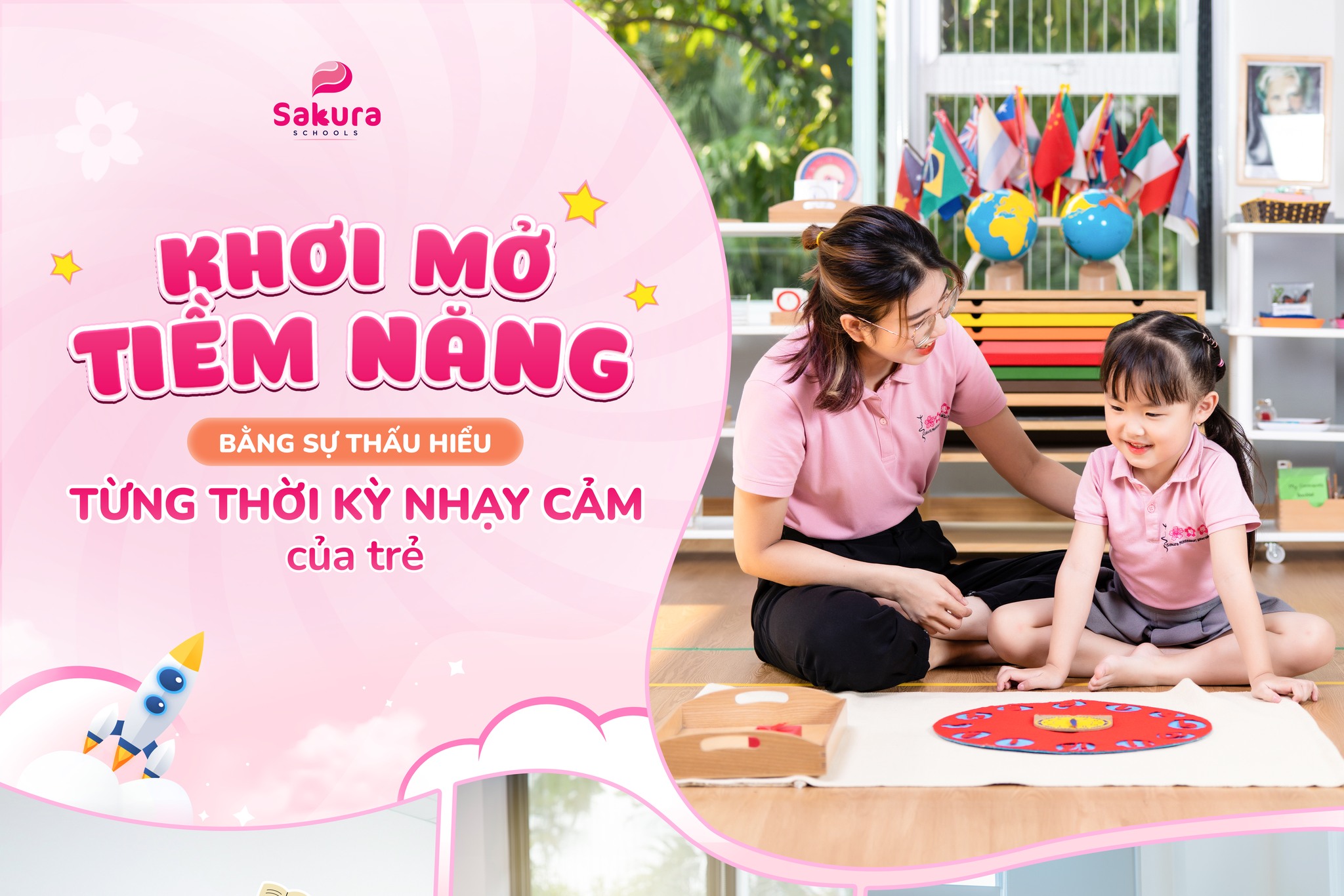 Một yếu tố đặc biệt giúp khơi gợi tiềm năng trong giai đoạn nhạy cảm của trẻ còn đến từ môi trường học tập. Trong lớp học Montessori tại Sakura Schools, 8 lĩnh vực học thuật (Thực hành cuộc sống, Giác quan, Ngôn ngữ, Toán học, Khoa học, Lịch sử, Địa lý, Nghệ thuật) luôn được chuẩn bị sẵn sàng, sắp xếp khoa học để con tự do trải nghiệm và chủ động khám phá.