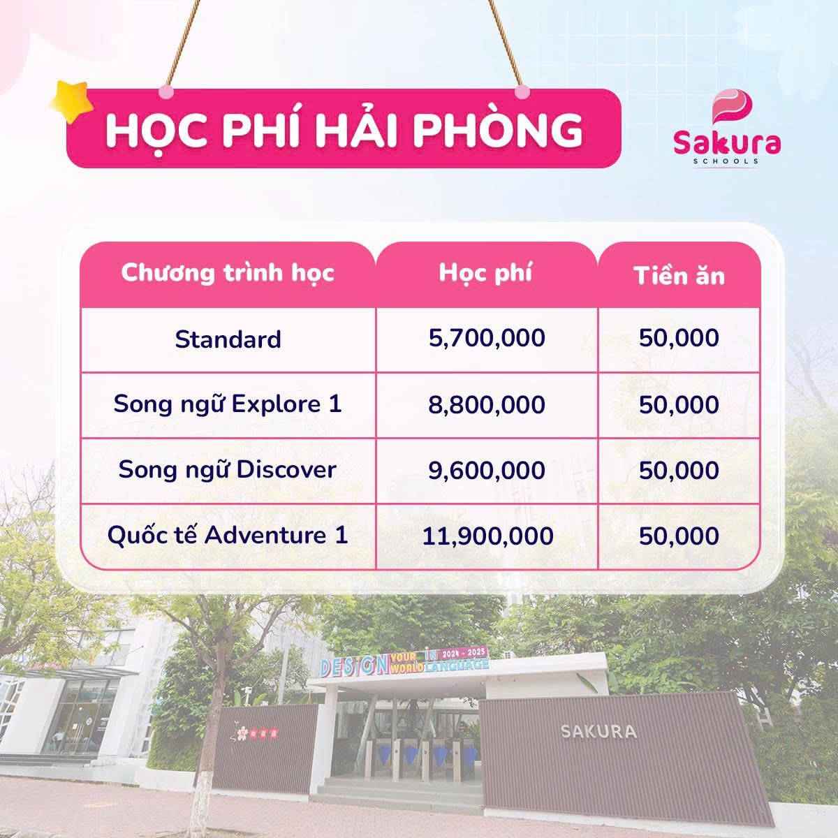 Học phí trường mầm non Sakura Schools năm 2025-2026 tùy thuộc từng chương trình học từ 6.600.000 VNĐ/tháng.