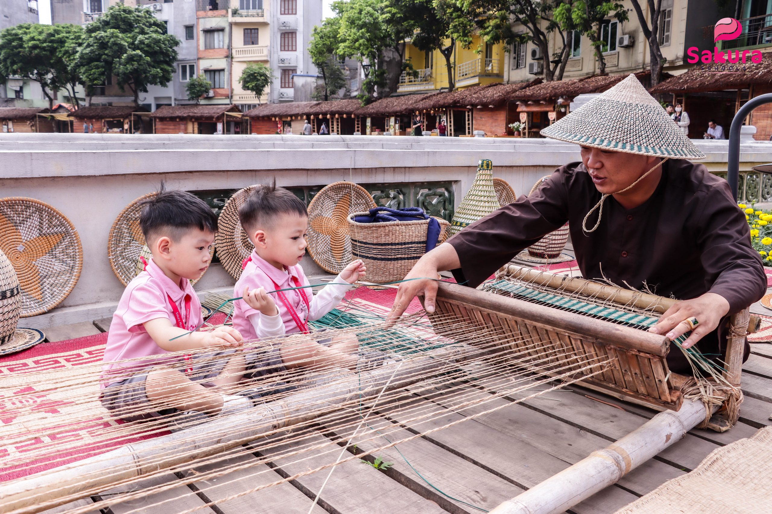 💫 Tiếp nối hành trình khám phá, các con được trực tiếp tham gia vào nhiều hoạt động đa dạng. Tại khu vực làng nghề, các con quan sát nghệ nhân dệt cói, chạm vào những nguyên liệu gần gũi và tự tay nặn tò he với những hình dáng đơn giản, đáng yêu. Bên cạnh đó, các trò chơi vận động tập thể như chuyền pháo, ném còn, nhảy bao bố, kéo co hay ô ăn quan cũng mang đến cho các con những giờ phút vui chơi sôi động và đầy hào hứng.