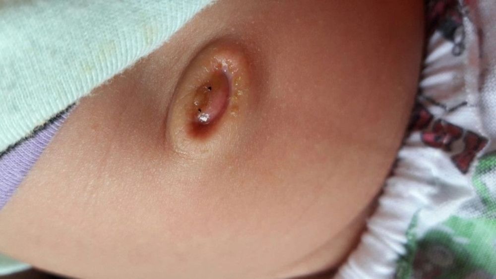 - Có u hạt đỏ ở giữa rốn rỉ dịch kéo dài trên 1 tuần sau khi rụng rốn.