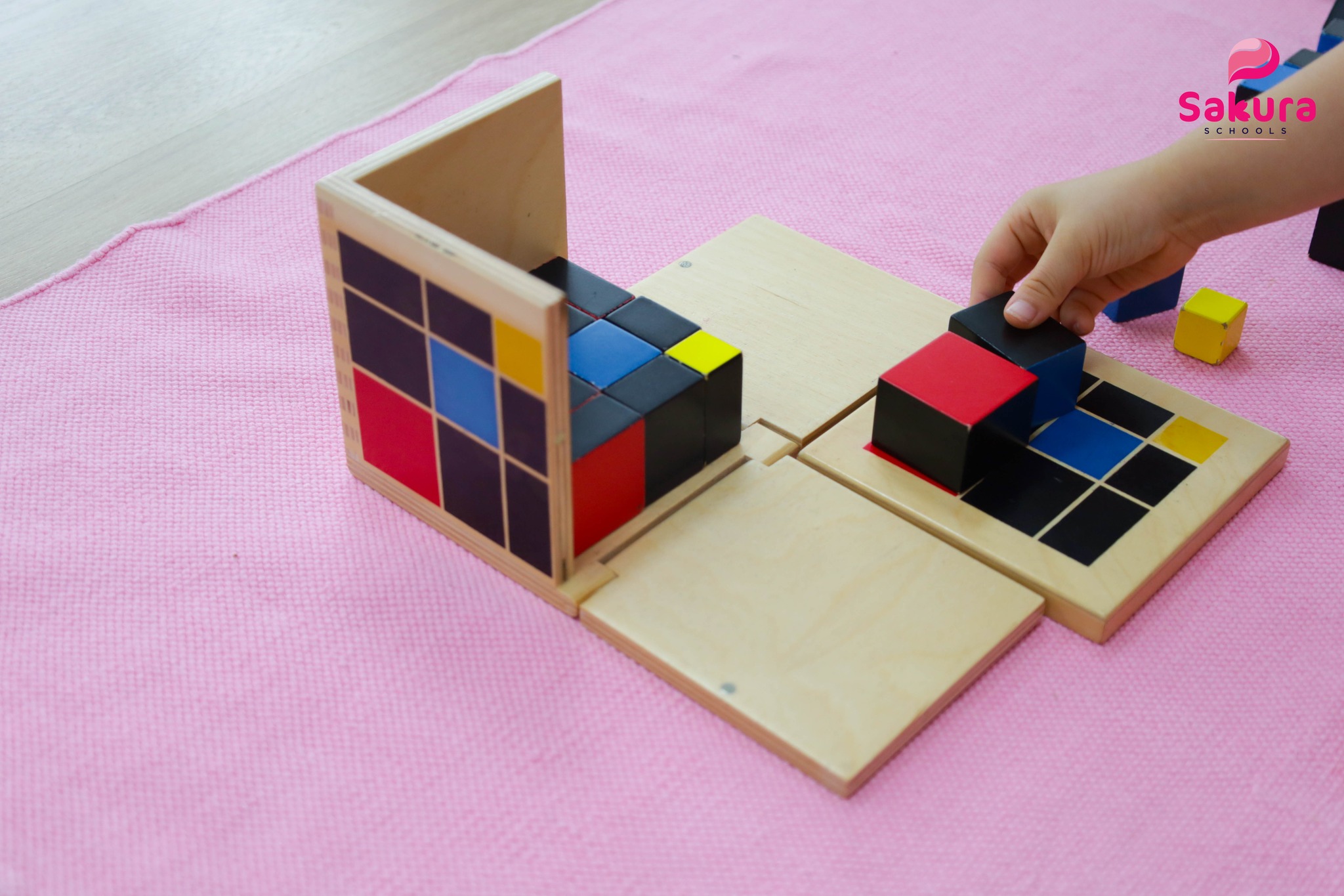 Trước khi hiểu “bình phương”, “lập phương” hay “hằng đẳng thức”, các bạn nhỏ tại Sakura Schools đã được nhìn thấy và cảm nhận khái niệm ấy qua bài học Hộp Nhị thức và hộp Tam thức.