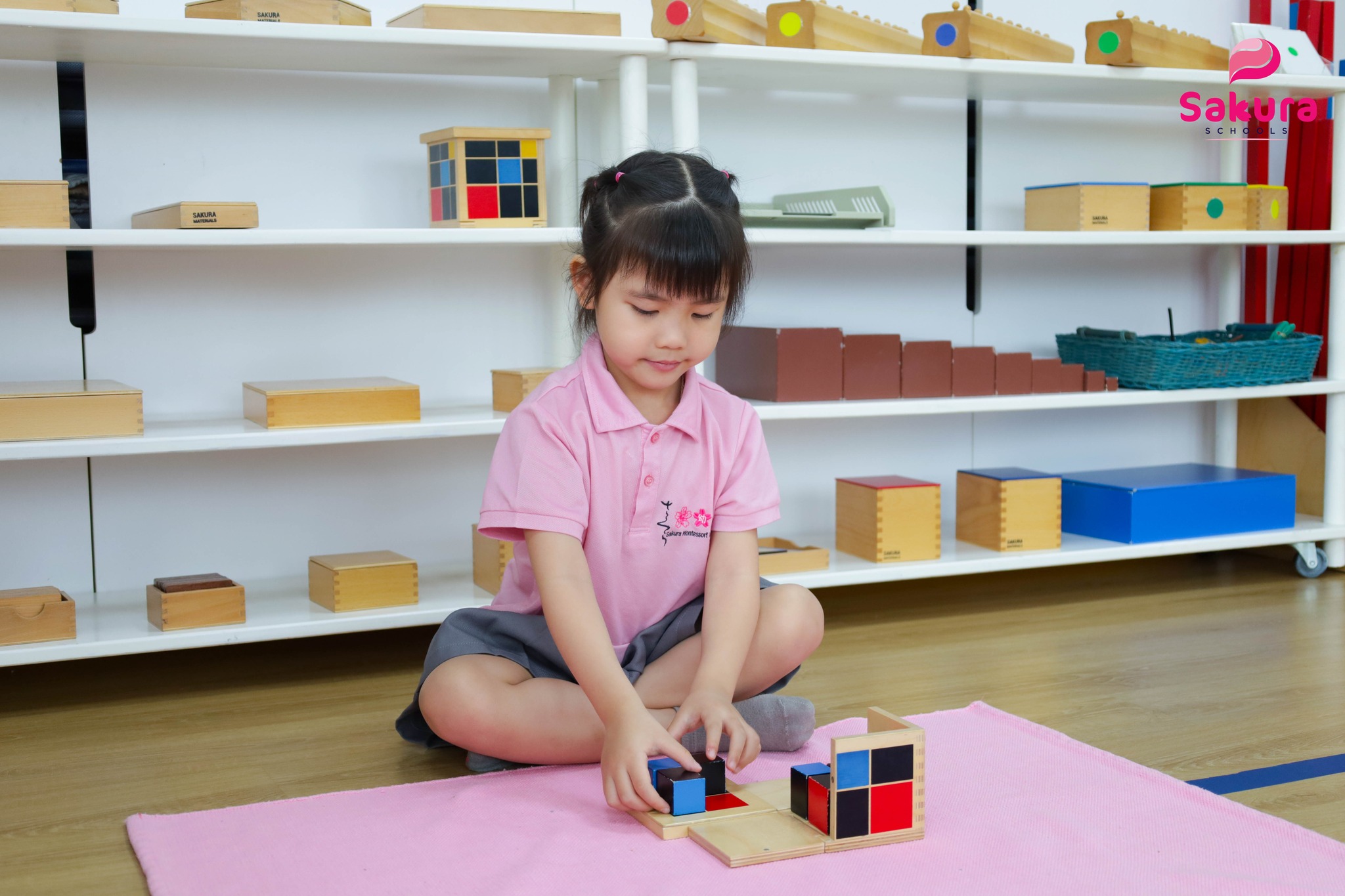 Với phương pháp giáo dục Montessori, Trẻ có thể “chạm vào Toán học” trước khi học công thức. Toán học không bắt đầu từ những con số, mà từ việc trẻ tự khám phá quy luật trong thế giới thật – nơi mỗi khối gỗ, mỗi màu sắc đều giúp con nhận ra mối liên hệ giữa hình dạng, tỉ lệ và cấu trúc.