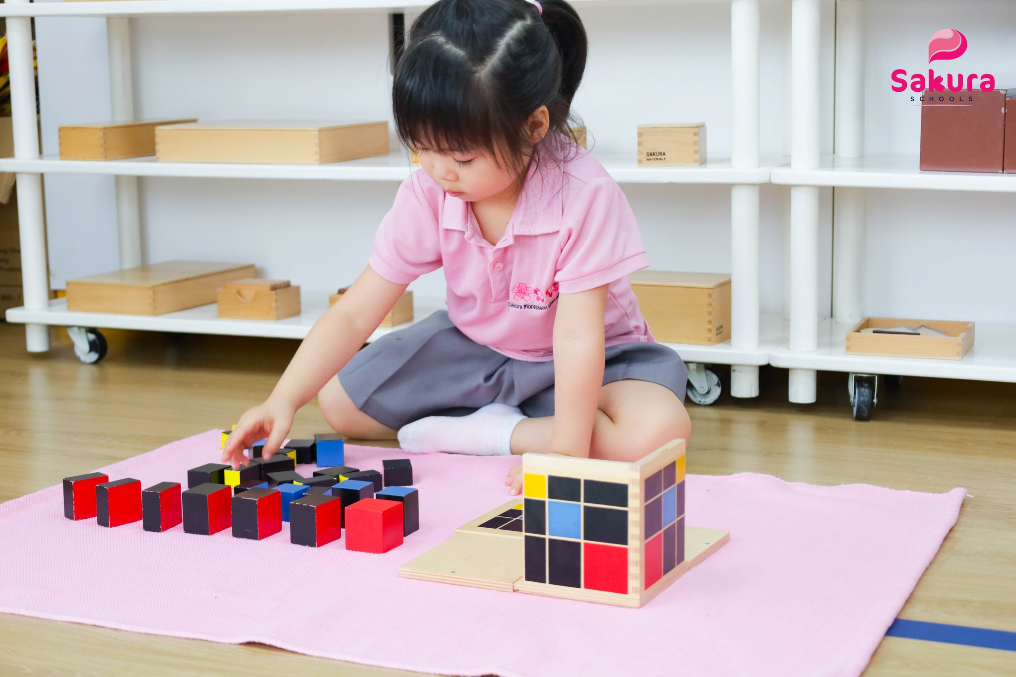 Trước khi hiểu “bình phương”, “lập phương” hay “hằng đẳng thức”, các bạn nhỏ tại Sakura Schools đã được nhìn thấy và cảm nhận khái niệm ấy qua bài học Hộp Nhị thức và hộp Tam thức.
