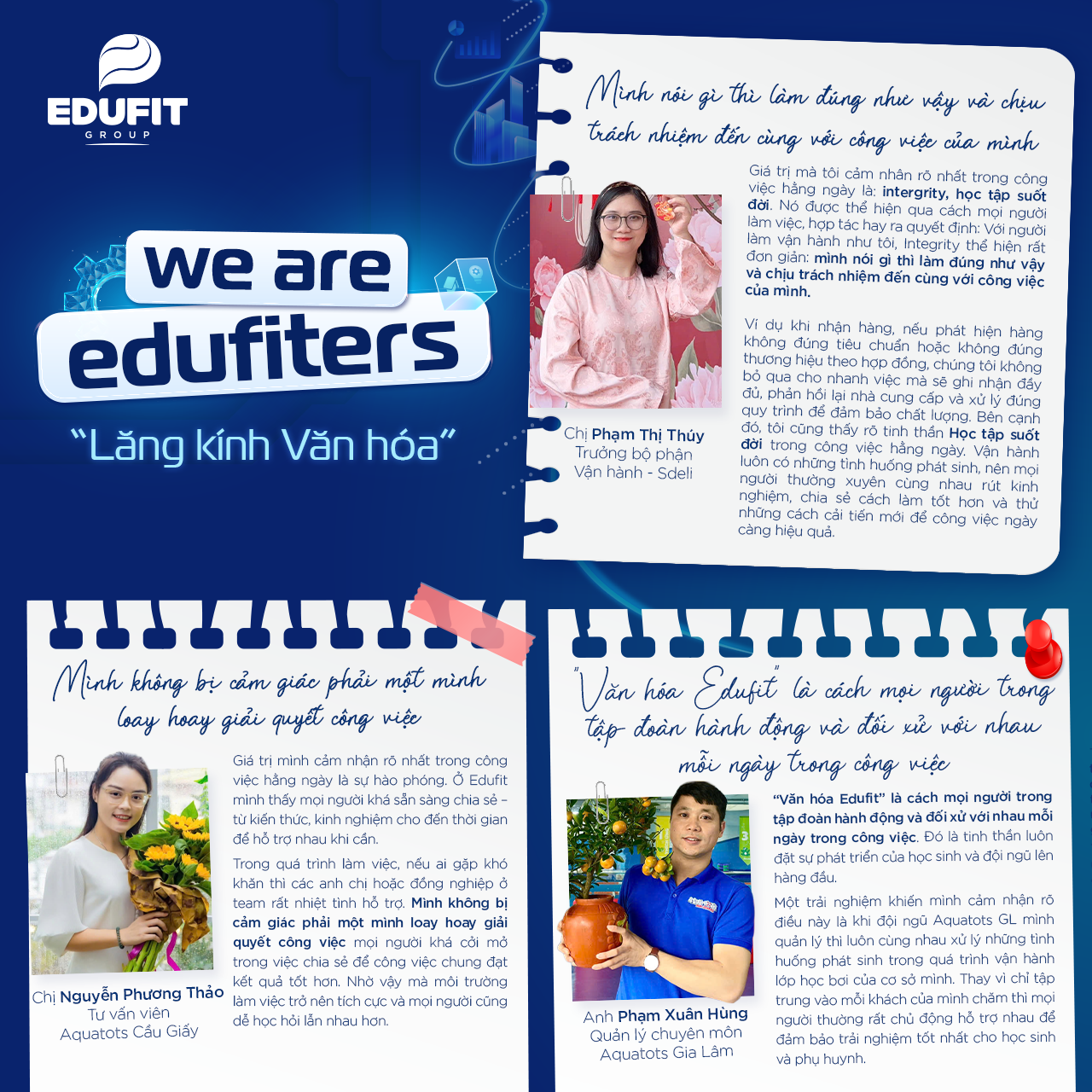 Nếu hỏi mỗi người Edufit: “Văn hóa doanh nghiệp trong bạn là gì?”, có lẽ sẽ không có câu trả lời giống nhau. Bởi ở Edufit, văn hóa không chỉ là khái niệm, không chỉ nằm trên poster, cũng không dừng lại ở những buổi training.