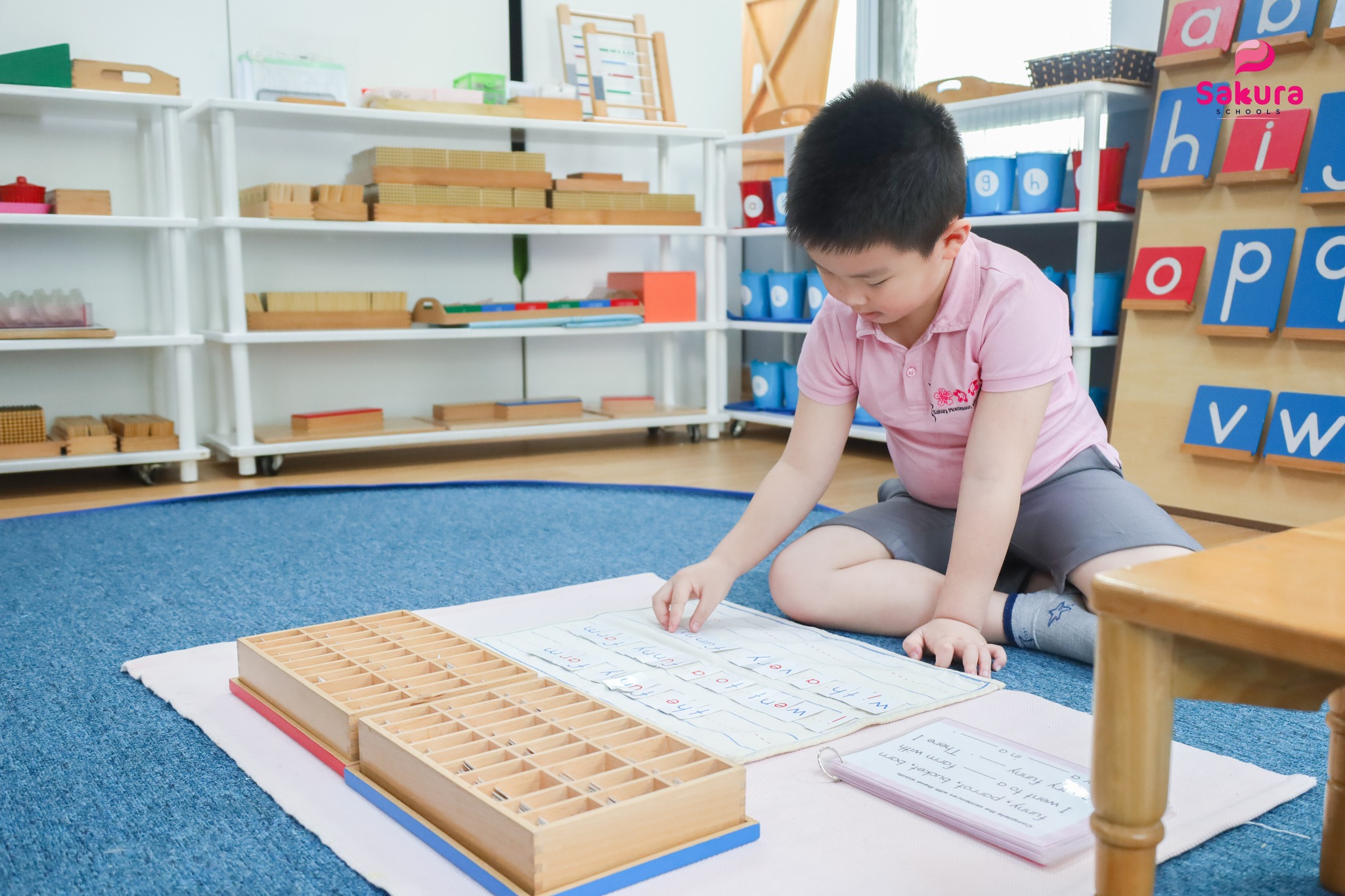 Với hoạt động này, thay vì học từ vựng rời rạc hay chép câu mẫu, trẻ bắt đầu bằng việc lựa chọn chữ cắt rời, sắp xếp từ ngữ, ghép, tạo câu và xây dựng câu chuyện dựa trên trải nghiệm và trí tưởng tượng cá nhân. Giáo viên Montessori đóng vai trò gợi mở, mở rộng vốn từ và cấu trúc câu, giúp trẻ phát triển ngôn ngữ đúng hướng.
