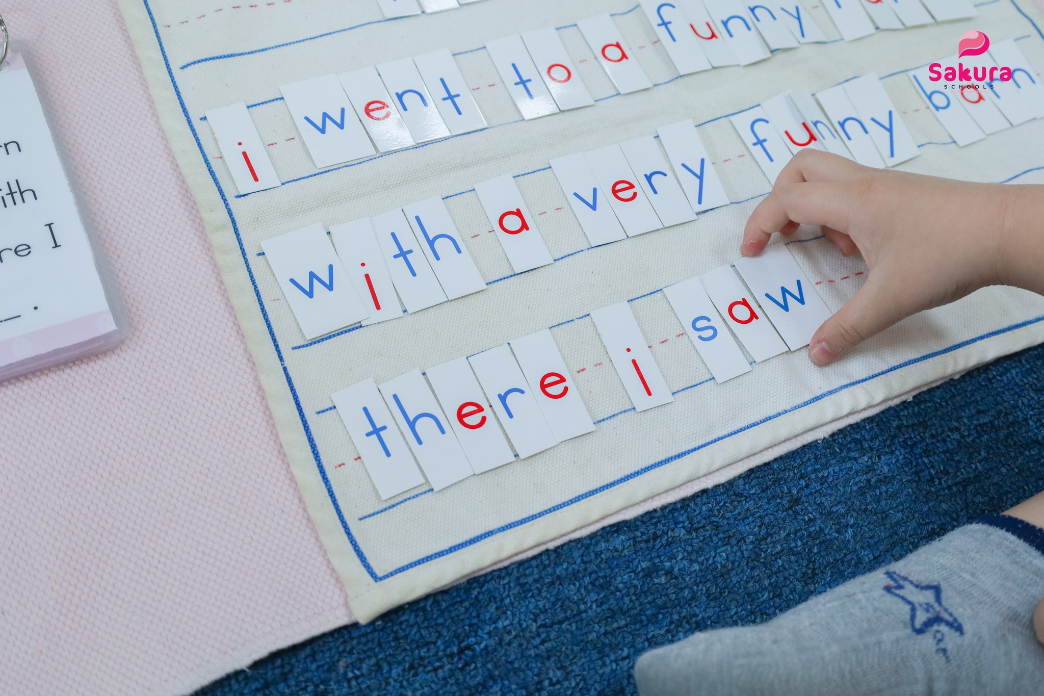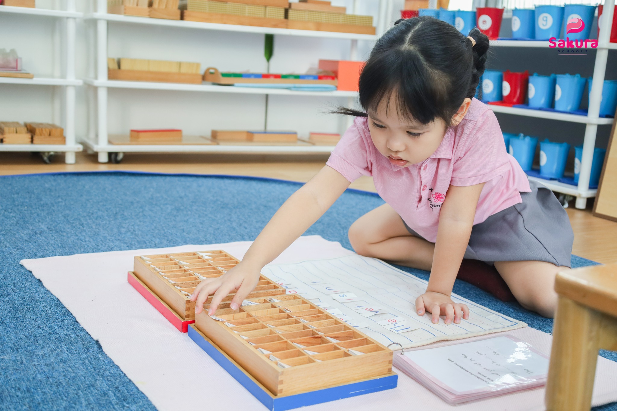 Với hoạt động này, thay vì học từ vựng rời rạc hay chép câu mẫu, trẻ bắt đầu bằng việc lựa chọn chữ cắt rời, sắp xếp từ ngữ, ghép, tạo câu và xây dựng câu chuyện dựa trên trải nghiệm và trí tưởng tượng cá nhân. Giáo viên Montessori đóng vai trò gợi mở, mở rộng vốn từ và cấu trúc câu, giúp trẻ phát triển ngôn ngữ đúng hướng.
